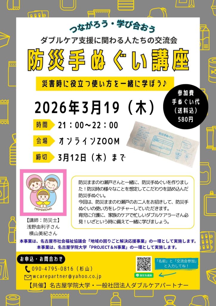 防災ままのわ瀬戸さんと一緒に、防災手ぬぐいを作りました。